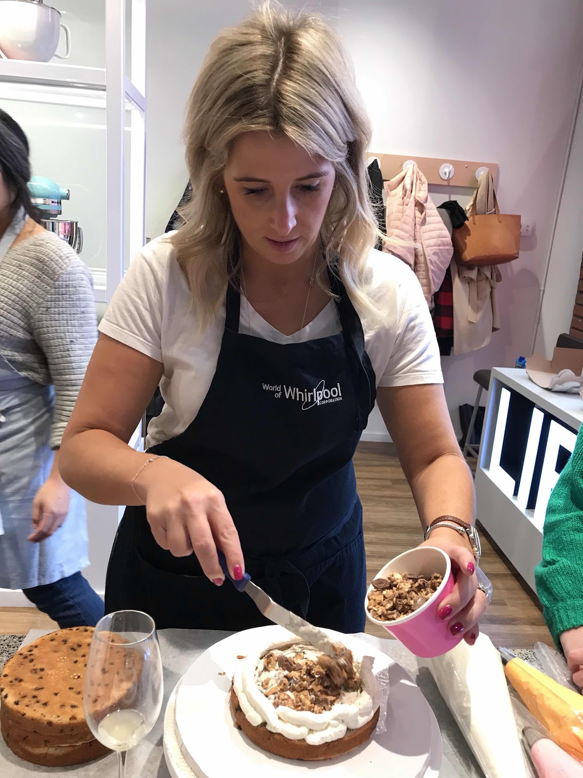 A team of Whirlpool employees helped us out with pointers on how to hold our frosting bags, how to smooth the frosting and how to get the cakes to balance with so many layers.
