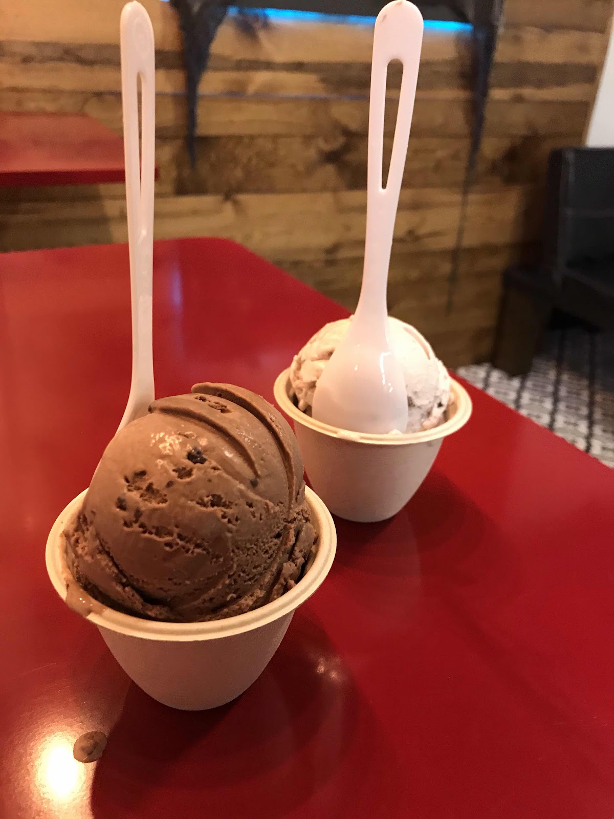 I loved that they had flights on the menu where you could try four flavors for $6.50. We were too late to have the flight, unfortunately, but each got a small scoop. It was "Double Tap" chocolate chocolate chip ice cream for me and "Entangled" blackberry merlot for my husband. It was so creamy and a perfect little bit of dessert to end the night. If you're in Fort Wayne, give them a try. For more info, visit mcmicrocreamery.com.