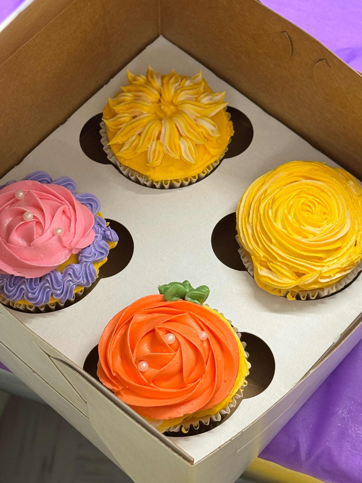 We had such a fun time, laughing and trying something new. It was a great creative outlet. Carrie made a cool sunflower design on one of her cupcakes and I loved making big and small rosettes. My kids were quite impressed by the designs but I have to tell you, those cupcakes were so delicious- they looked AND tasted good! And I also was impressed with both of our designs- and that in just an evening, I could learn how to make fabulous looking cupcakes!