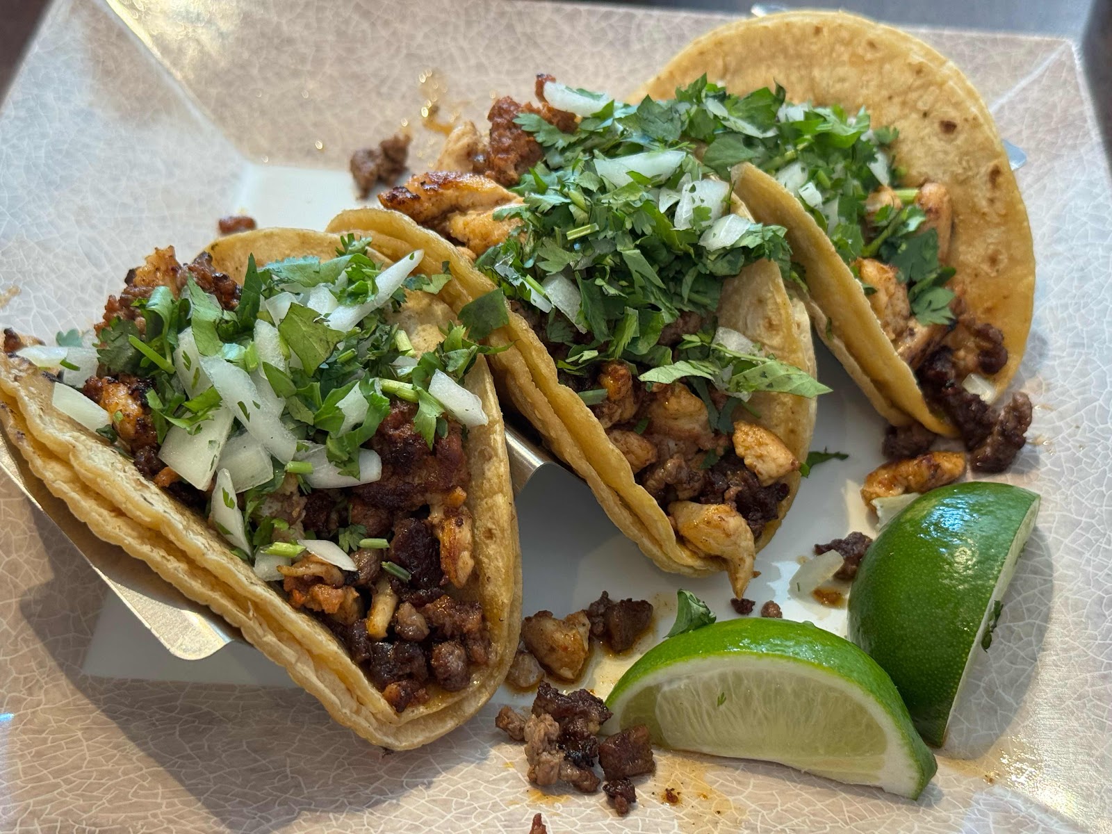 I stopped in for a quick bite with hubby recently and loved the trio tacos of chicken, chorizo and steak. He got a giant burrito filled with generous amounts of tender, flavorful steak. A horchata was a perfect beverage to wash it down.