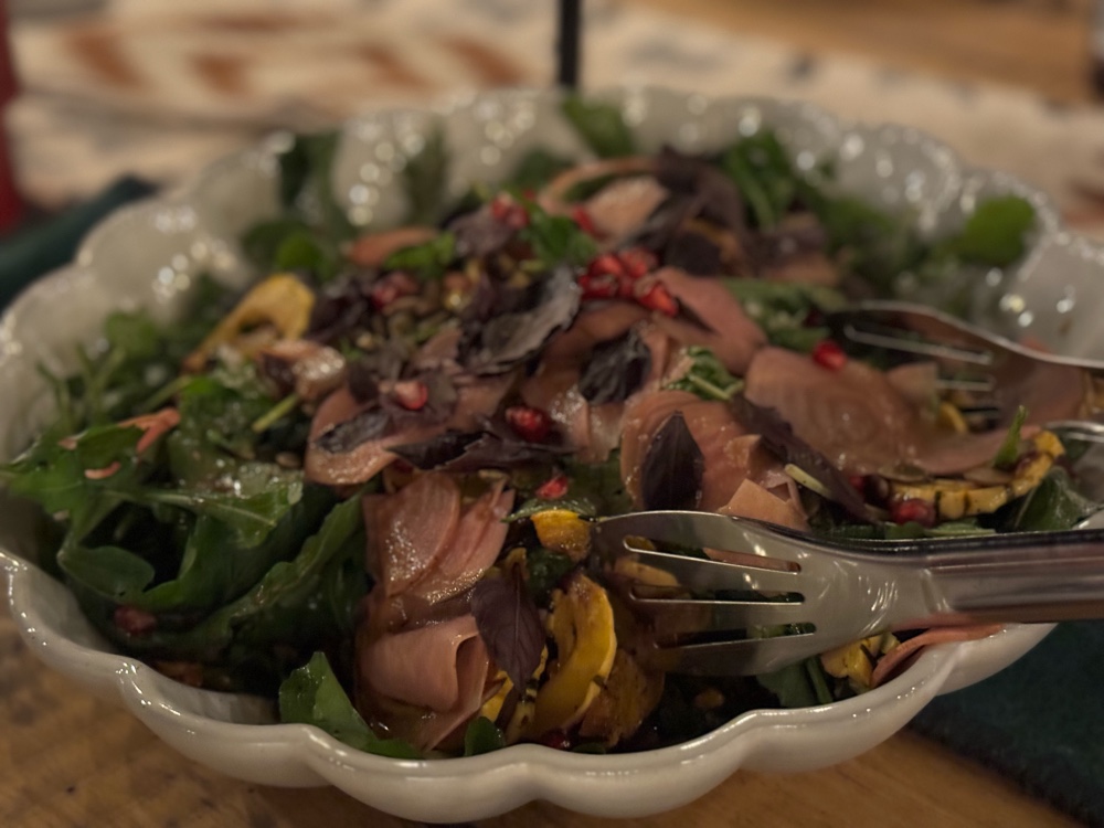 I'm a big salad girl and I had one of my favorite salads of the year as the first course - it included delicata squash, pomegranate and toasted peptitas over greens with agave balsamic.