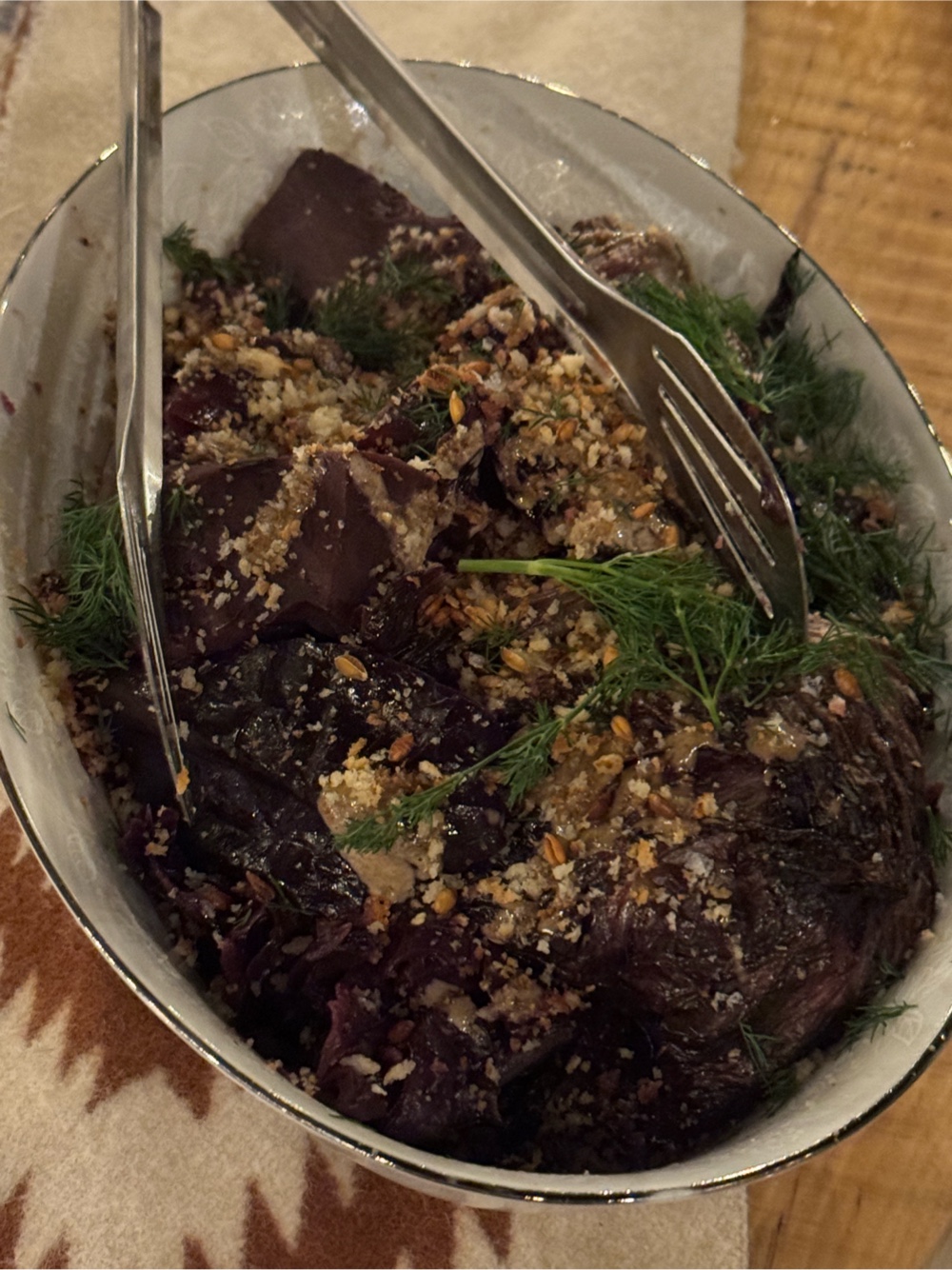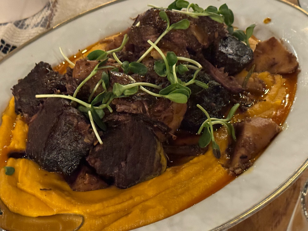 The entree was beef short rib with cajun butter, roasted parsnip and purple sweet potato puree.