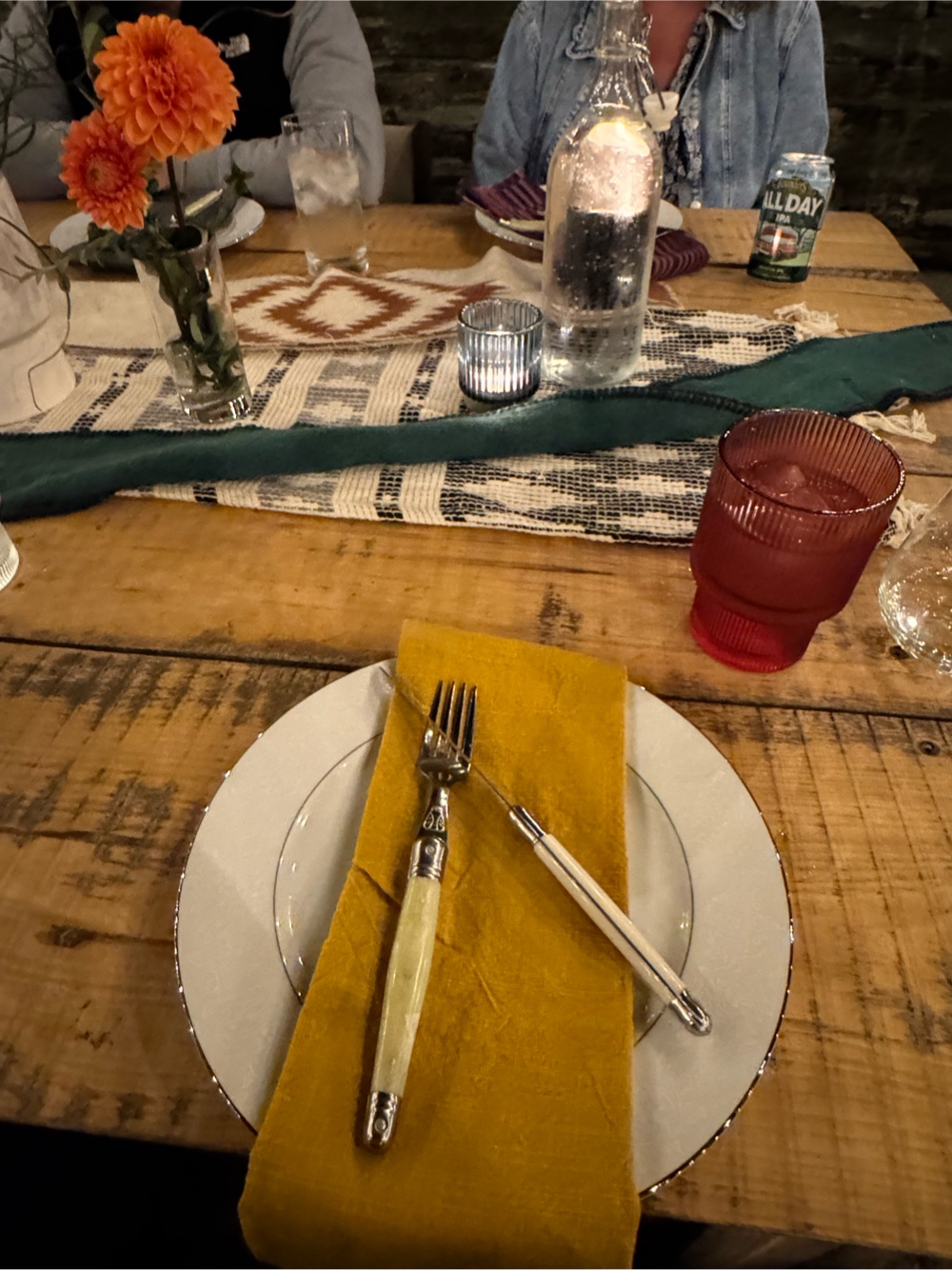 Next we made our way over to our seats where we were welcomed by owner, Natalie Cooper, and introduced to the Nude Dude Food crew. The table settings were lovely and the tables themselves were gorgeous.
