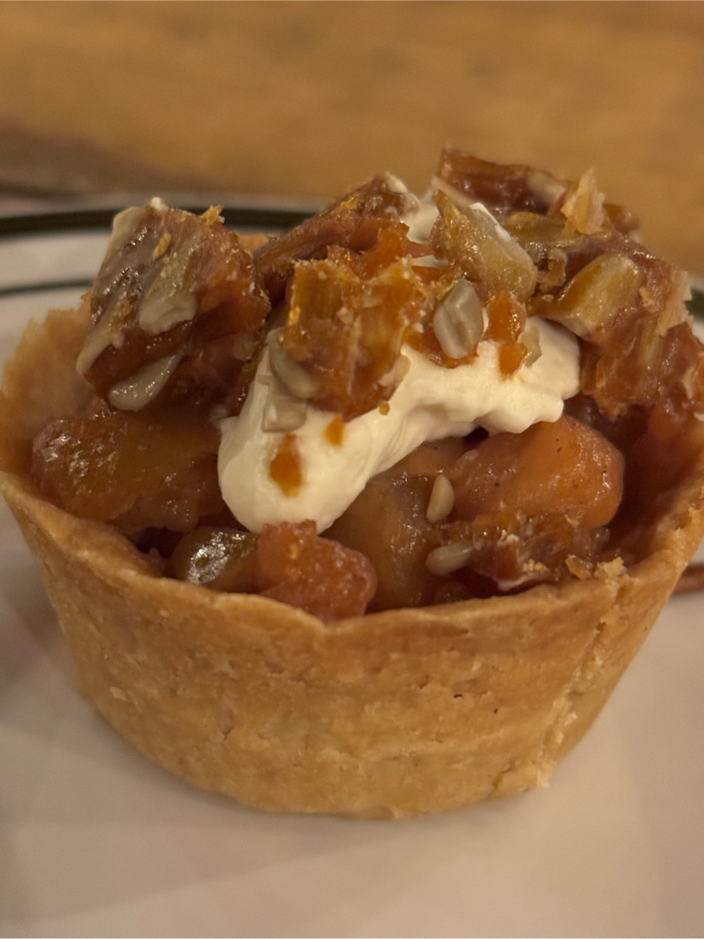 We had the perfect little finish to our meal - a caramel apple tartlet with vanilla bean marscapone and sunflower seed brittle.